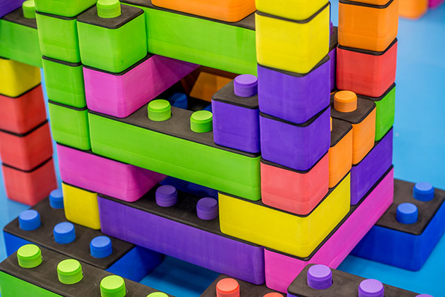 Пятая крутая штука – конструктор «Lego» гигантских размеров. Нечто похожее мы встречали в Сочи-Парке, российском аналоге Диснейленда в Олимпик парке. Там конструктор разбросан под открытым небом, но элементы были на порядок крупнее и тяжелее. В «Йети» конструкторы занимают отдельную зону, каждый элемент размером с кирпич. Синий цвет, дополненный ярким декором, оригинальные формы, большое разнообразие форм, что тут же включает воображение на предмет, а что из всего этого можно построить. Дети хватают их сразу как видят, начинают перетаскивать и соединять друг с другом. Это реальный «Лего», только ну очень большой. При нас мальчик построил колодец с себя высотой и залез внутрь. А другой строил стену. Рядом, в этой же зоне, стоит какой-то космический стол белого цвета, из которого светит свет, а сверху лежат черные маленькие детали конструктора. Стол низкий и большой, порядка десяти детей одновременно могут заниматься за ним. Детали чёткие, абстрактные, контрастные, что хочется, во-первых, всё перетрогать, а во-вторых, действительно что-нибудь собрать. Из лёгкого пластика, гнутся, сгибаются, но не ломаются.