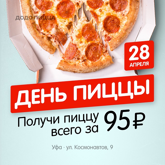 28 апреля в нашем городе пройдет День пиццы. Побывавшие на этом празднике люди смогут не только получить по суперцене свежевыпеченную пиццу Пепперони, которая во всем мире давно стала символом этого популярного итальянского блюда. Одновременно они познакомятся с «Додо Пицца» — пиццерией нового формата, с компанией, которая в качестве главного принципа провозгласила открытость. Так что это будет пиршество не только для желудка, но и для ума.