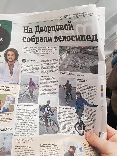 В воскресенье, 22 апреля, в Северной столице проходил «Велодень» - большой фестиваль для велосипедистов. Мероприятие началось с утреннего перфоманс на Дворцовой площади - 300 человек выстроились в фигуру огромного велосипеда. Организатором перфоманса как раз и выступил Раиль Габдуллин, переехавший некоторые время назад в Санкт-Петербург. До переезда Раиль Габдуллин активно занимался пропагандой велотранспорта в Уфе, занимался организацией велофестивалей. Прошлый опыт пригодился ему и в Санкт-Петербурге.