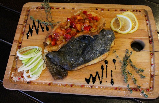 На обед заказала греческий салат, суп-пюре из брокколи, камбалу с овощами и тропический коктейль – мечта будущей стройняшки. Все это, конечно, одной осилить не удалось, разделили по-братски обед с фотографом, обсудили рабочие вопросы по дальнейшим публикациям. Никто нам не мешал, приятная музыка, расторопные официанты, быстрое обслуживание, главное, вовремя. Отобедали мы знатно, я бы даже сказала, по-царски – ребята, я категорически советую все это заказывать и есть. Что мне особенно нравится в их камбале, что она не имеет специфического, ненавистного мною навязчивого вкуса рыбы. Нежное филе под овощным соусом. Господь, почему я не умею так готовить?!