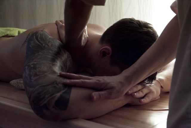 «Дома и стены помогают», - хорошо, что первая точка оказалась на ул. Зорге. Здесь я жил долгое время. Вертолётка, лес и трамвайные пути, по которым я ехал с университета домой, отвлекали меня от мыслей, что я направляюсь в место под названием «Студия йоги и аюрведы «Шанти». Отбросив смущение и стереотипы, я зашел в дом №64, открыл нужную дверь и удивился: тренировочный зал, завешанный полотнами, удобная раздевалка и приятный дизайн – в, казалось бы, небольшом помещении все было расположено не просто по фэншую, но и просто удобно. Лег на деревянный стол, по телу растеклось масло, и мягкие руки мастера Натальи ассиметрично начали гулять по задней части меня. Никогда бы не подумал, что такие легкие движения могут привести к такому очевидному результату. Через какое-то время я почувствовал небывалый релакс. Даже несмотря на то, что все это время вокруг нас ходил фотограф и снимал этот умеренно интимный процесс. В течение следующего рабочего дня голова моя была как никогда свежа, и вечером я чувствовал не усталость, а наоборот – прилив сил. «Наверное, это оно», - подумал я, приняв тот факт, что я готов отдать 1500 руб. за то, чтобы мои рабочие будни всегда протекали в таком дзене.