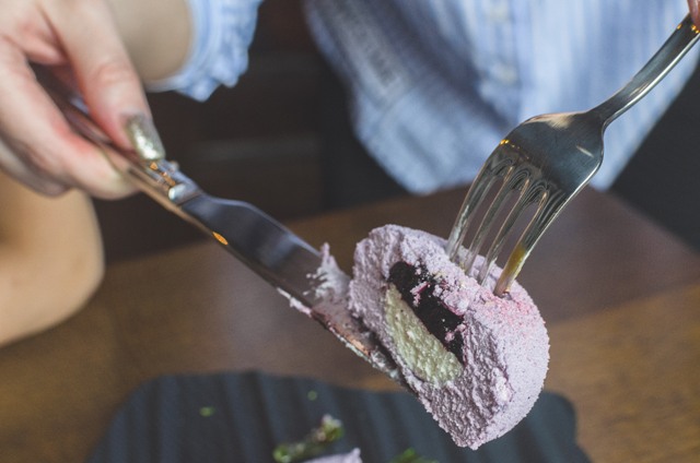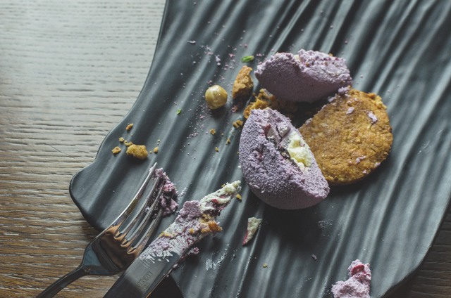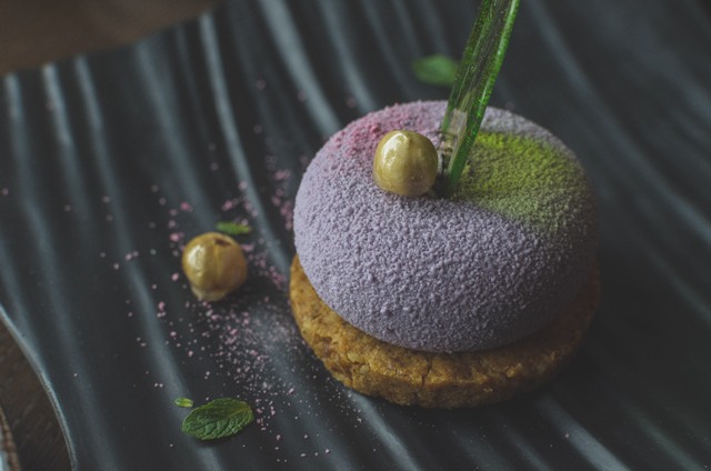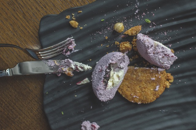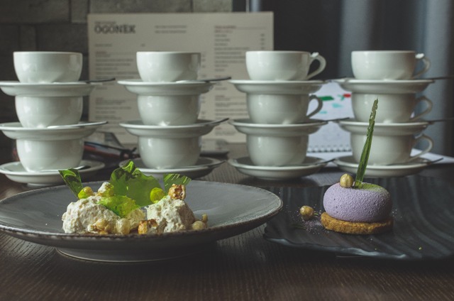 Как и во всём меню, десерты в «Огоньке» можно пересчитать по пальцам – это чернично-сырный десерт, яблочный пирог, шоколадный флан, черный лес, чизкейк с чёрной смородиной и... барабанная дробь… мусс из башкирского сыра «корот», который с правильным акцентом звучит как «курут». Известно, что корот богат полноценными молочными белками, содержит биологически активные вещества типа углеводов, ферментов, микроэлементов и множества витаминов. Я его видела в разных состояниях, но мусс из корота – это башкирский молекулярный футуризм! Он ооооочень лёгкий, но отнести его к низкокалорийному нельзя. Разбавлен карамелью, карамельным фундуком, карамельным попкорном и зелёными стёклышками карамели, что очень вдохновило и порадовало мою пятилетнюю дочь. Она съела все стёклышки сразу, потом попкорн, потом сам мусс. Почему в «Пышке» до сих до этого не додумались? Это же наш родненький, знакомый с детства благодаря всем нанайкам корот в таком новом для себя формате. Очень крутой десерт, лучше набивших оскомину наполеонов, чизкейков и тирамису в миллион раз! Возьмите к кофе или к зелёному чаю, всё равно будет идеально! Всего 260 рублей. И второй десерт – чернично-сырный за 360 рублей. Это фундамент из какого-то рассыпчатого печенья, сделанного вручную, аккуратной пироженки, внутри которой творожно-сырная консистенция и прослойка из черничного джема или желе. Это надо есть, а не смотреть на это. Первое, что приходит на ум – необычно, свежо, ново. Второе – сбалансировано, утончённо, по-европейски стильно и при этом натурально.