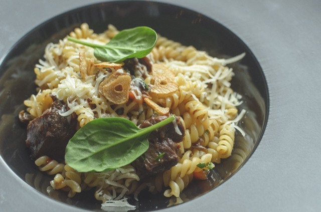 Это очень хороший, здоровый – для долголетия и румянца – салат. Вот прям вижу его во всех здравницах, школах и роддомах республики. И он по-честному вкусный. Я люблю свеклу, не знаю, как её можно не любить, но мне всегда лень её готовить. В «Огоньке» к свекле добавляют кешью, «снег» из сыра, зелень и оливковое масло. Идеальное сочетание вкуса и пользы. Свекла сладковатая, сыр солоноватый, кешью пряные – то, что надо для весеннего авитаминоза. Если закажите на второе крем-суп или пасту, то полноценный обед из высококачественных продуктов обеспечен! Кстати, OGONЁK много использует местное фермерское, много изготавливает самостоятельно, но то, что должно быть привезено из конкретного региона планеты, так как этого требует оригинальный рецепт или вкус, привозится. Например, стейки в «Огоньке» прямиком из Аргентины, так как стейк, в принципе, родом оттуда, а не откуда-то из Подмосковья. И этим разительно отличается уровень кухни. В первую очередь вкусом блюд!