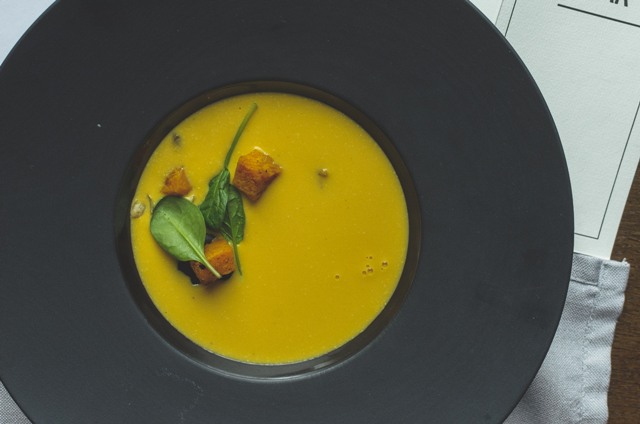 На сайте Джейми Оливера написано, что «в переводе с итальянского osso buco означает «кость с отверстием» – это романтичное, элегантное блюдо, представляет собой нежнейшую тушёную телятину и обязательно поднимет вам настроение». В «Огоньке» про оссо буко знают не понаслышке, а вовсю давно готовят его не хуже, чем Джейми Оливер. И я попробовала это, да. Большущая порция свежих фузилини, нежнейшие ломтики телятины, которые настолько мягкие и сочные, что тают во рту, разнотравье, чесночные лепестки и горсть сыра, которая растекается, тянется и делает рецепт завершённым. Для любителей паст идеальный вариант. Кстати, само меню в «Огоньке» не супербольшое, вам не придётся листать кулинарную библию с картинками, всё содержимое поместилось на одну сторону листа А3. И из мучных историй здесь вам предложат либо этот фузилини, либо чёрные спагетти с креветкой и зелёным горошком. Всего три супа – борщ, уха и тыквенный. Но отбор рецептов проводился настолько тщательно и взвешенно, что здесь каждая позиция – 100% маст ит, который можно заказывать, не сомневаясь ни на грамм.