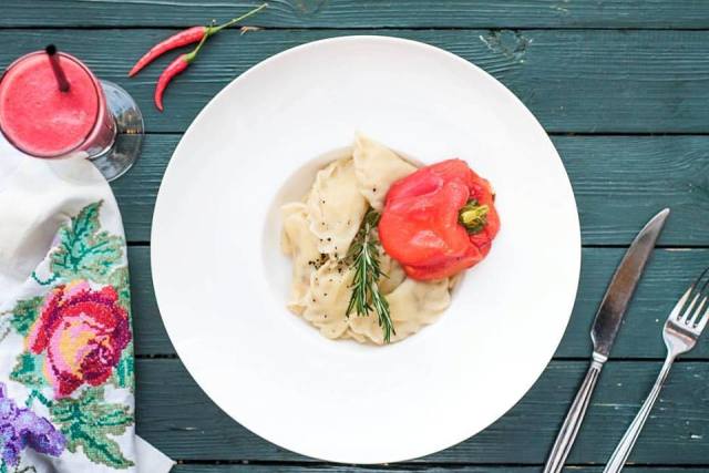 Традиционно на постном столе присутствуют вареники с грибами – приправленные душистым маслом, они станут настоящим объедением. В «GG» порция таких вареников с белыми грибами и картофелем обойдётся в 430 руб. Особый вкус блюду придаст запечённый перец.