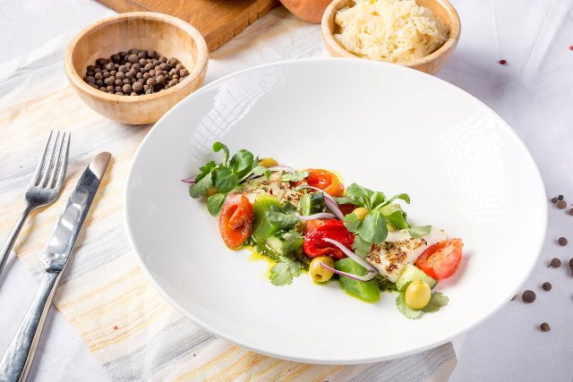 Любители остренького смогут полакомиться закуской «Антипаста из маринованных артишоков, оливок, каперсов, печёного перца, кабачков гриль».