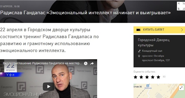 Так в идеале должно выглядеть событие на нашем сайте, организатор постарался и выслал материала в достатке - здесь есть вся необходимая информация о спикере, теме выступления, мероприятии, а также фото, видео и даже онлайн продажа билетов.