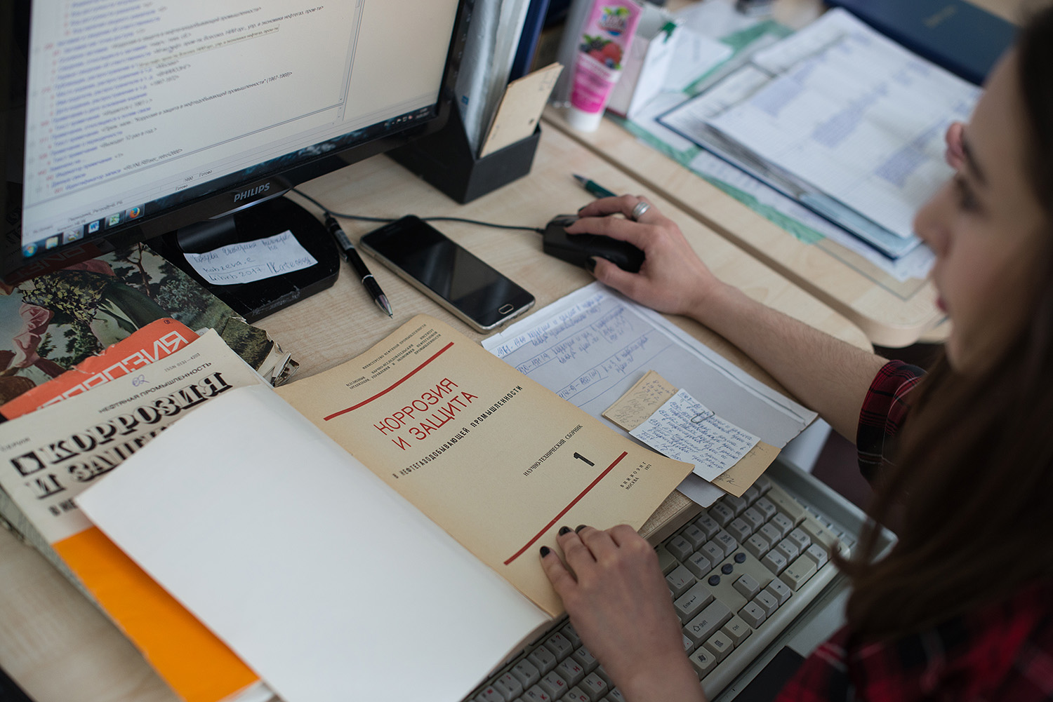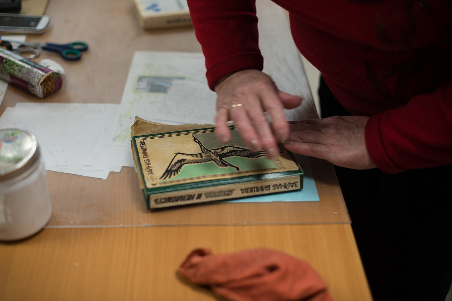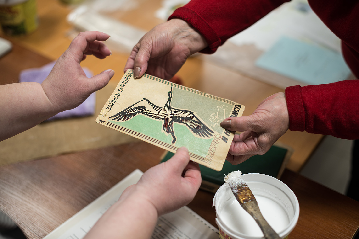 В отделе реставрации и консервации книг пахнет знакомым с детских уроков труда клеем ПВА. Две работницы под весёлую музыку обновляют развалившийся переплет старого издания «Любви и ненависти» Зайнаб Биишевой, усиливая корпус книги. Работа требует большой концентрации внимания, чтобы ненароком не отрезать лишнего и не приклеить название на корешок не в ту сторону. Реставрация одной книги может занимать до 24 часов, всё зависит от степени испорченности и ветхости экземпляра.