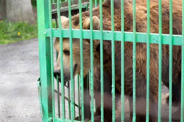 Сейчас все находятся в вольере, к сожалению, видимо, нет средств на поддержание заборов и надзора за свободным выгулом животных. Вот в вольере сидят медведи, лисы, павлин. А вот, например, самое страшное животное в лесу - кабан, он может перекусить почти все. Раньше здесь были зубры, их выменяли в Беловежской пуще на медведей.
