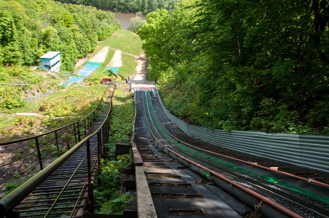 Здесь, на трамплине, в 80-е годы проводились международные соревнования, куда приезжали немцы, французы, но прыгали они с маленького трамплина. Был и большой, 90-метровый, он простоял почти до полного возведения, но в середине 90-х годов выяснилось, что здесь подвижные грунты и он не выдерживает, начинает сползать, сгибаться, и по оценкам 2000-го года на укрепление этих грунтов было необходимо около 260 миллионов. В итоге его спилили. В школе мы ходили в нарядных одеждах и смотрели соревнования. Когда я уже был подростком, мы скидывались по 50 копеек и брали в бочках квас, ходили с ним в лес.