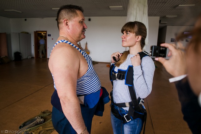 В назначенный день и час, а обычно это происходит в выходные, вы приезжаете в Первушино. В случае с тандемным прыжком вам не грозит многочасовой инструктаж, его вы проходите за 15 минут. Перед этим регистрируетесь у Татьяны, отдаете ей свои кровные, заполняете анкеты и подписываете документы-договоры. Потом заглядываете к врачу Александру, который вас зачем-то взвешивает и интересуется самочувствием.