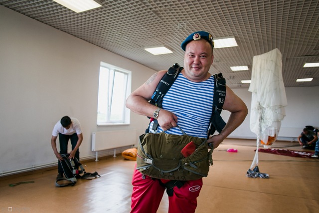 2 августа мне предстояло тусоваться с суровыми десантниками, которые в тот день должны были проводить показательные прыжки и групповые полеты на радость голубым беретам, в изобилии собравшимся на Забельском аэродроме, что возле Первушино. Наш прыжок, запланированный на утро, решено было перенести на полдень, чтобы выступающие могли спокойно отпрыгать и прилететь обратно за нами. В общей сложности к тому времени мой прыжок был перенесен уже в третий раз и я не особо расстроилась, успела привыкнуть к парашютному смирению. В это время у меня была возможность поболтать с десантурой.
