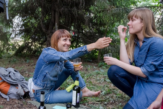 «Ребята, а я хочу рассказать свою историю», - говорит Таня, которая выбрала себе бутылку белого, да так с ним и подружилась. Таня пьет редко, поэтому ей подходит это легкое сухое вино из винограда классического сорта «совиньон блан», которое больше подходит в качестве аперитива, к овощным салатам и рыбным блюдам. Свежее, с цитрусовыми нотками, его хорошо пить знойными вечерами. «Я знаю мало счастливых историй о любви, но эта, она коротенькая, правда, навсегда останется для меня светлым лучиком. Он приехал к нам в город на несколько дней и я должна была заниматься его размещением и координацией. Как только мы посмотрели друг на друга, то все поняли. И смеялись, смеялись. Все вокруг что-то делают, все задают вопросы ему, он отвечает, но ты понимаешь, что сейчас он не с ними, а с тобой. И пишет тебе, а ты сидишь рядом. И это так странно. Ничего не соображаешь. Состояние абсолютного счастья. Я была счастлива. Он мне сказал: «Ты такая классная. Тебя невозможно не хотеть». Женщине очень нужны эти слова, мы от них расцветаем!