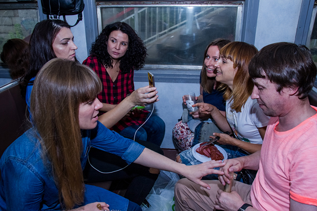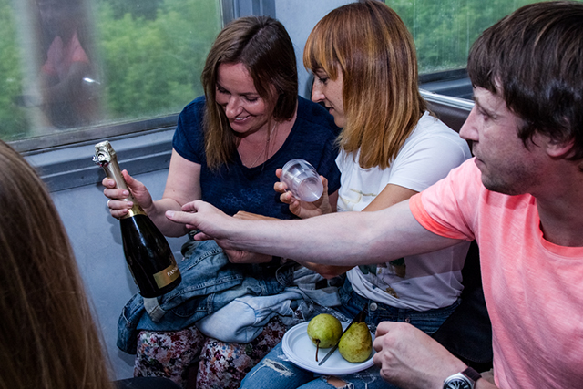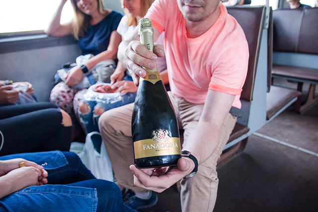 Дорога предстояла непростая – распитие спиртных напитков в общественных местах запрещено законом. 1500 рублей штраф или 15 суток за решеткой – столько нам грозило креативное редакционное задание. Мы побаивались, но уверенным шагом шли к кассе: «Пожалуйста, 7 билетов до Чишмов и обратно». Молили всех алкогольных богов – Вакха, Бахуса и кто там еще – чтобы нас не словили бравые защитники правопорядка, ибо цели наши были благими: рассказать читателям о вине и несколько историй о любви от наших гостей.