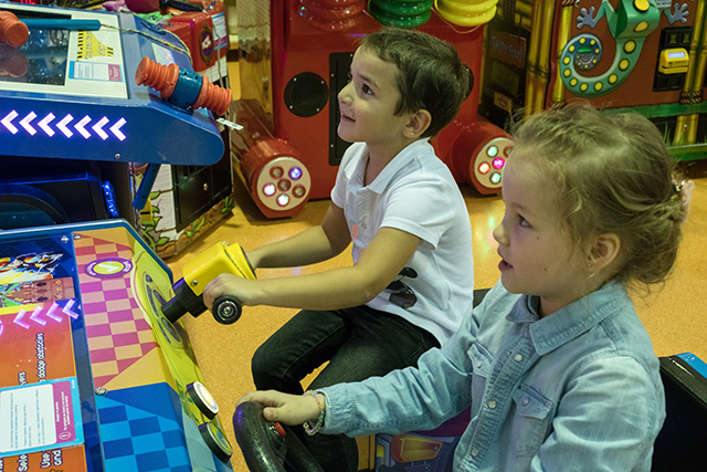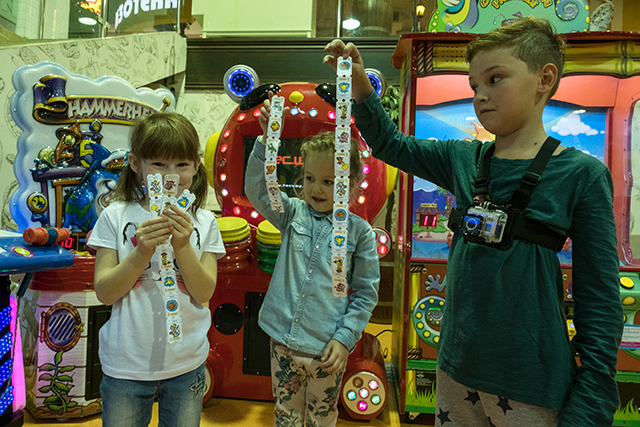 Катя, 5 лет: «Мне понравился вон тот автомат с кнопками голубыми и еще два батута. Хочу прийти с родителями еще много раз».