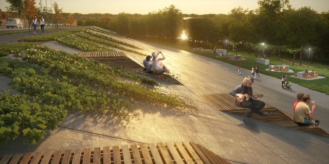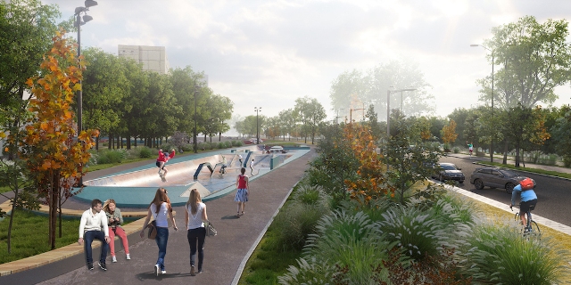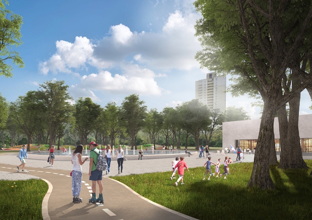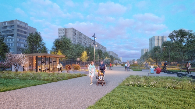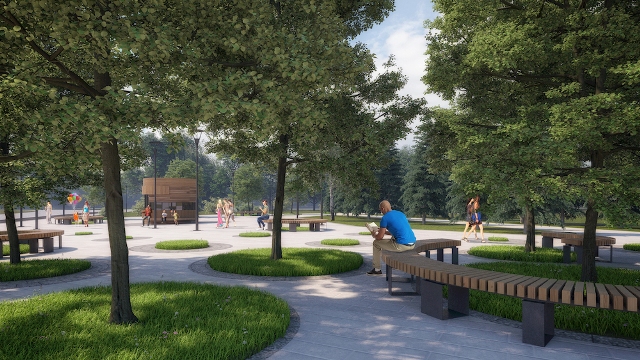 Аттракционы и существующие спортивные сооружения по проекту также останутся. Спортивную площадку дополнит новый мини-скейт-парк для юных спортсменов. Велосипедистов всех возрастов порадует изолированная велодорожка.