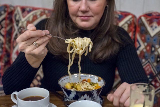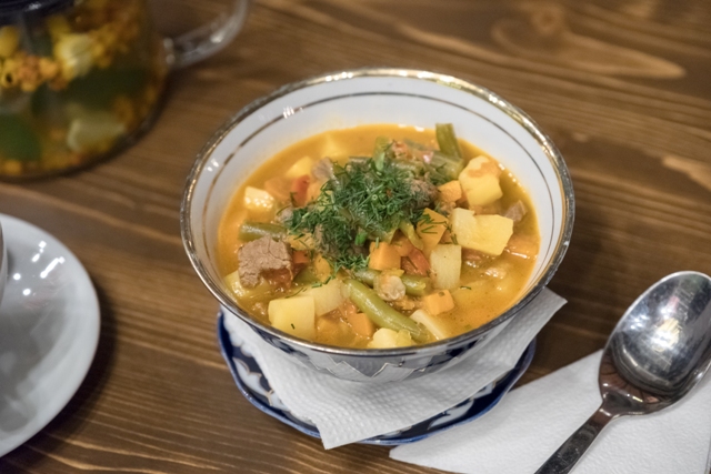 Лагман, ну что вам рассказать про лагман? Я не силён в рецептуре, но здесь меня смутил картофель и стручковая фасоль. Спишем это на полёт фантазии повара, а в остальном к блюду никаких претензий. Это был вкусный лагман.