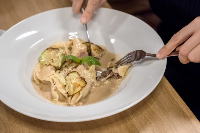 Первым был «Перчини». Почему именно он? Простая привычка считать слева направо и не более. В меню стандартный набор для заведения ориентированного на итальянскую кухню: салаты, пицца, паста, ризотто, супы, десерты… Чёрт! Всё такое вкусное, но надо выбрать что-то одно, поэтому беру себе пасту Брациолле (копченый цыпленок, шпинат, кедровые орешки, лук, чеснок и всё это под тёртым сыром Пармезан). Кстати, про пасту: по меню можно набрать разные добавки к понравившейся пасте и получить на выходе свой уникальный продукт.
