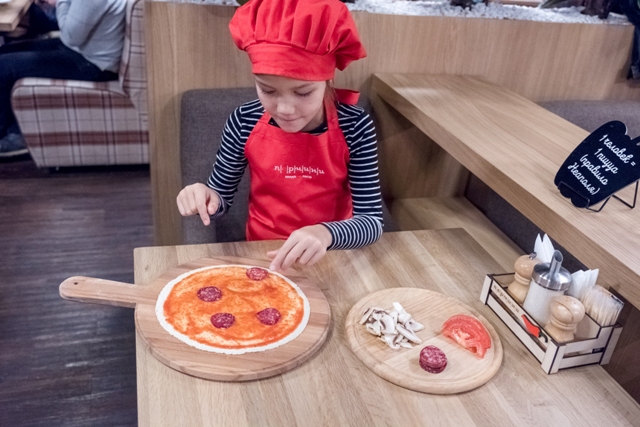 Но больше всего повезло дочке, ведь самостоятельно приготовить пиццу в ресторане доверяют не каждый день. Хоть тут она и проявила небольшую сдержанность в выборе ингредиентов, но на выходе получился вполне себе классический продукт, который почти не отличишь от того, что делает настоящий пиццайоло.