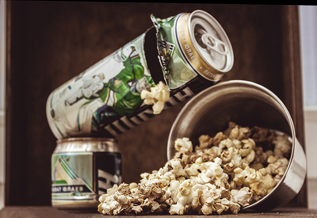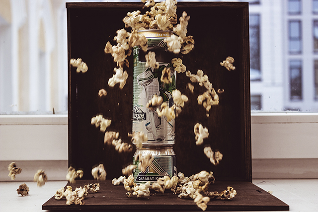 Закусил попкорном, который так же можно приготовить в пивной банке. Я брал тот, что продается сразу для микроволновки - с маслом и добавками. С обычной кукурузой нужно повозиться, предварительно добавив в нее масло и соль.