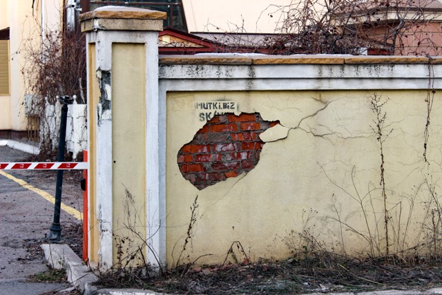 Реклама закрашена, но тут может быть всего 2 уфимских варианта: закрашиваем плохо, сквозь краску все равно видно номера телефонов, ссылки и так далее; закрашиваем на совесть, но совсем другим цветом. В идеальном мире должен быть третий вариант: закрасить враждебную надпись краской того же цвета, что и стена. Но это не для Уфы, тут мы таких чудес не встречали