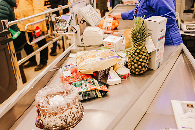 Мясные закуски, рыба, хлеб, несколько видов сыра, хороший алкоголь (спасибо скидкам в Ленте за это), и кофе - не пропадать же добру, пусть друзья опробуют кофемашину прямо после вскрытия подарков. Дорогая путинская икра (и Путин тоже), рыба, большой вкусный торт и можно идти к кассе. 20 минут на продуктовый шоппинг - и плавный обход команды жены, чье наполнение тележки заняло ровно в два раза больше - 40 минут.