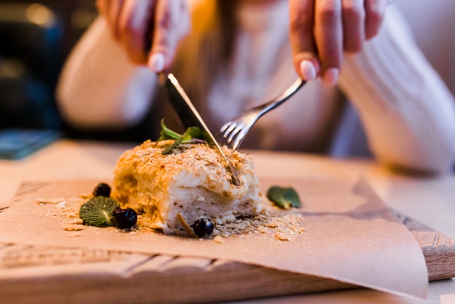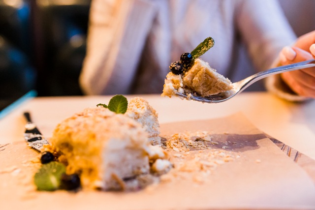 Теперь подошло время десерта – хвала богам, он невелик по размерам, хотя по калориям не уступит здесь ни одному блюду – старый добрый Наполеон. У здешнего Наполеона две особенности – во-первых, его делает на заказ один и тот же кондитер вот уже много лет, а во-вторых, он едва дожидается вашей вилки, а потом начинает плыть к вам в рот – это все, что вам нужно знать про местный Наполеон.