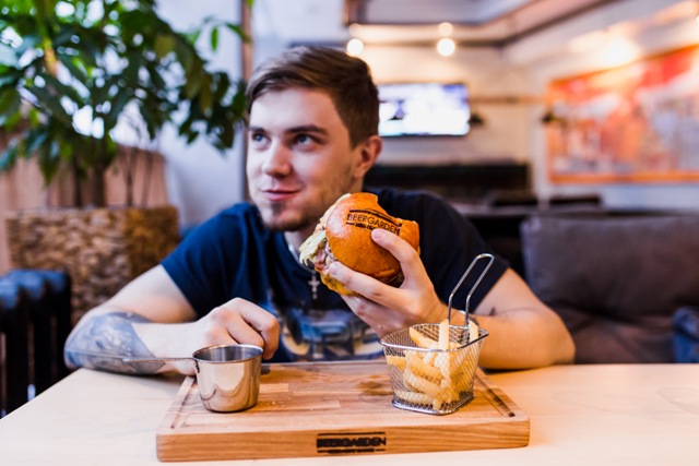 Мой фотограф потребовал заказать бургер. Ок, ок. Вот есть люди, которые везде заказывают цезарь, я всюду беру брускету с ростбифом и перцем, а он любит бургеры. Одним словом, мужчины. Поскольку сегодня мы балуемся простой едой, то и бургер выбрали классический. Что такое классика бургера? Это котлета, пару видов соуса, сыр, томаты, маринованные огурчики и салат. Как просто все это сложить в булочку бриошь и как просто все это испортить. Поверьте мне, я не раз закоптила кухню котлетками и не сразу у меня получилось что-то похожее на нормальный бургер. Значение имеет все – от вида булочки, до вида сыра. Для местного бургера повара взяли правильные продукты и правильно их сложили – запивайте его лагером и будет вам простое счастье дровосека.