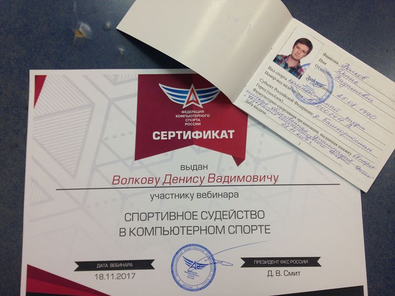 После получения корочки мне должны выписать ходатайство в аккредитованной федерации киберспорта. В уфимскую федерацию киберспорта я не ходил, потому что она аккредитовалась только в декабре, хотя никого про это, конечно же, не информировали. Поэтому я обратился в федерацию киберспорта в Перми, где объяснил ситуацию и мне без проблем помогли. Теперь у меня есть ходатайство и представление, я отнес их в спорткомитет и жду, пока мне все подпишут.