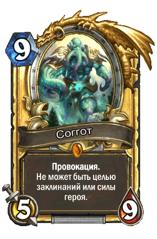 Соггот, это одна из первых золотых карт, которые мне выпали из паков Древних богов. Также очень нравится Лепрогном и император Тауриссан. Он в свое время был очень популярен.