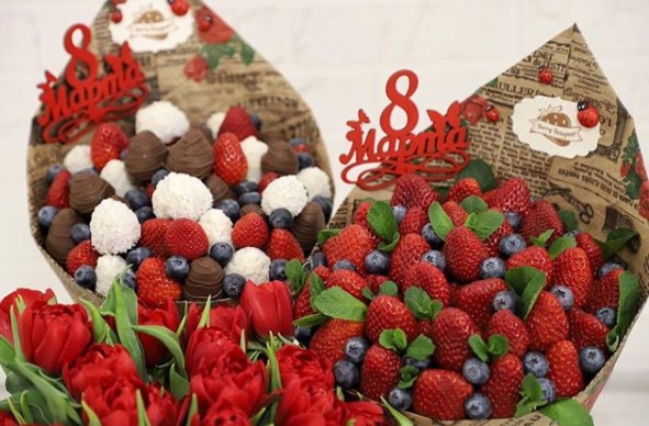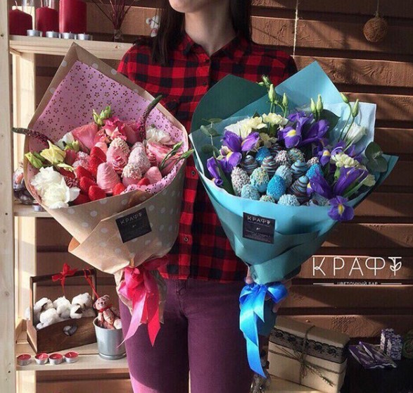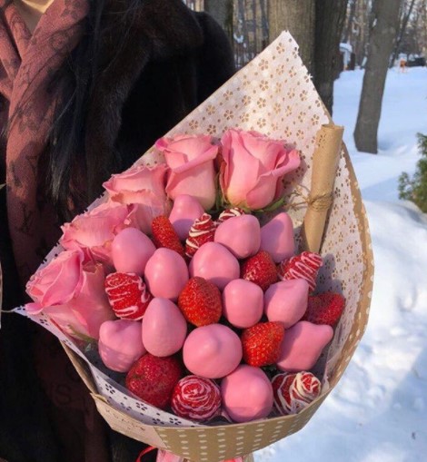 Клубничная охапка – не только очень привлекательный, но и очень вкусный съедобный букет. Нам приглянулись вот такие букеты в freshberry.ufa