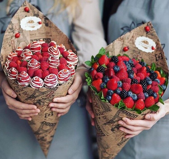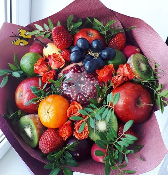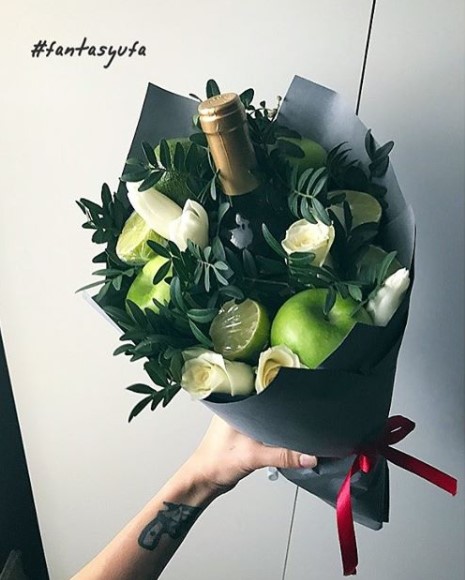 Мы тут подумали: а если одариваемый объект имеет аллергию на сладкое лакомство? Тогда очень кстати подарить букетик из разных фруктов, который, например, очень круто собирает Альвина из fruit_buket_ufa: