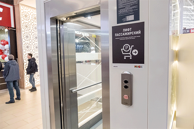 Конечно, МЕГА не ограничивается первым этажом. Детский клуб, например, вверх по лестнице, несколько отменных ресторанов - тоже. Но если вы родитель с коляской или 33 детьми под мышкой, подниматься даже по эскалатору - та еще забава. К счастью, за нас продумали и это - светлый пассажирский лифт с прозрачными стенами - так, что можно помахать ручкой оставшемуся «на земле» папе - и подняться наверх.