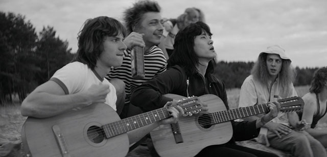 Фильм «Лето» – это песня русского рокера. Она полна кодов, считывать которые могут только те, кто не просто слушал русский рок, но и был им увлечён. Я честно не вижу смысла смотреть этот фильм всем, кто моложе 35 или не увлекался той музыкой. Идите с миром и не тратьте своё время. Даже за примитивным набором слов в текстах того же Цоя была жизнь его, друзей и страны. Порой они так изящно обходили цензуру, что этим нельзя было не восхищаться. Диалог в столовой в фильме великолепно это передаёт. При приёме в Ленинградский рок-клуб строгий цензор вопрошает, ну вот о чём ваша песня «оу мама, мама, я бездельник». Ответ: «О тунеядстве». Ну хорошо…