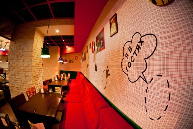 Есть детская зона: телевизор, детский санузел, игрушки, раскраски. Каждое воскресенье с 14.00 до 16.00 работают аниматоры. Ах, какие красивые фотографии на их сайте. Сходить хочется уже только ради этих цветных подушек на стенах.