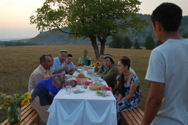 Айгуль: «Мне понравились съемки застолья в деревне. Первоначально хотели сделать стол празднично накрытым, как обычно это бывает, с яствами и пирогами. Но мы передумали. Раз это сон, почему бы не добавить чего-то футуристического. Поэтому накидали яблок и создали некий сюрреализм. К тому же был красивый закат и теплая ночь, все это отложилось в памяти»