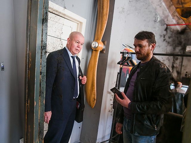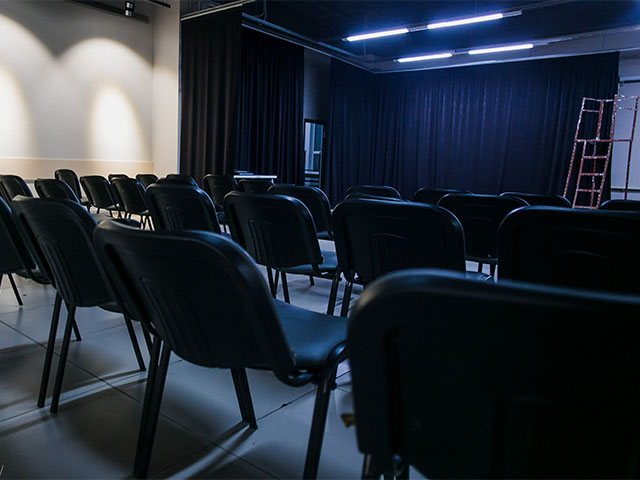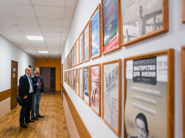 А.В.: Вот эти площади, мы же их не пожалели. Это ведь всё деньги, каждый квадратный метр здесь – это деньги. Вот и сейчас здесь что-то происходит. Читка или кастинг.