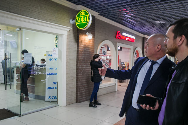 А.В.: Это флагман в Уфе. Это самый первый МФЦ в торговом центре, мы первые до этого додумались. В субботу работает, в воскресенье работает. Человек приехал из района, он знает, что здесь он всегда может получить все услуги, вплоть до регистрации сделки на недвижимость. На этом уровне три входа, рядом парковка. Автомойку открыли.