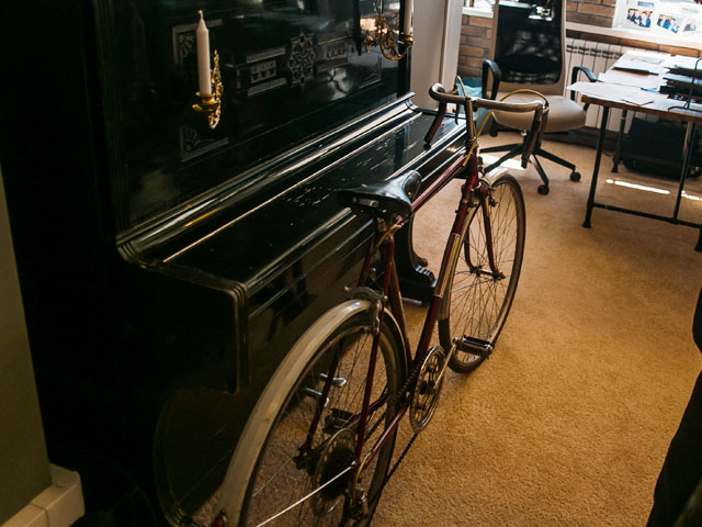 Велосипед, байдарка и деталь коробки передач. Это не гараж, это офис.