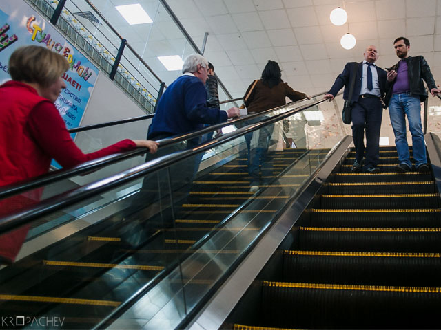 А.В.: Здесь у нас офисы. Здесь, на первом уровне, мы хотели сделать фэшн-зону – модное слово. У нас это не получилось. Но я даже рад – мы пошли по другому пути, более душевному. Люди возвращаются сюда за своим детством. Все родители приводили своих детей сюда. Все первые велосипеды здесь покупали, телевизоры здесь покупали.