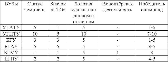 Количество дополнительных баллов в ВУЗах Уфы 2018 года